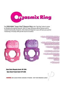 The ORGASMIX Super Stud Pleasure Ring is the Top Dog when it comes to Vibrating Stimulating Pleasure!  With it`s Super Sensuous silicone texture and it`s 3 Speed functionality: Euphoric, Ultra Intense and Orgasmic, will have your partner Screaming in Ecstasy with just the touch of a button.2 LR44 Batteries IncludedFeatures:Up to EIGHTY Electrifying Minutes of Intense Pleasure!Raised Nubbies Promotes Extra Erotic SensationStretchy Band Fits any manMulti 3 Speed MotorReplaceable LR44 Batteries IncludedPhthalates Free SiliconeWaterproof