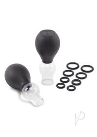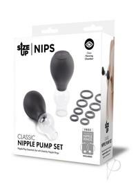 The Classic Nipple Pump Set has complete versatility, with two pump sizes and four ring sizes perfect for nipples or other body parts. The set includes stretchy silicone nipple rings to continue the sensation for prolonged pleasure, and the transparent chambers allow for sensual viewing. Also included in the box are a pair of non-piercing nipple rings.