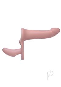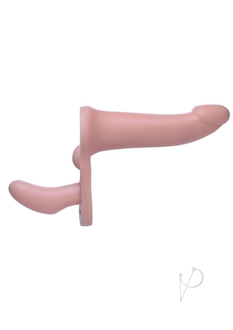 Both partners can experience the pleasure of penetration with this innovative strap on harness set. Perfect for two women or pegging, the smaller dildo slips easily and comfortably into the wearer while a small nub stimulates her clit. The larger dildo is slim and sleek for comfortable anal or vaginal penetration. The sexy and adjustable harness keeps the dildo in place for even your most vigorous thrusting action!Measurements:10 inches in total length.Longer dildo measures 7 inches insertable, 1.5 inches at widest diameter.Small dildo measures 3.5 inches insertable length, 1.5 inches at widest diameter.Waist size adjustable from 29 inches to 40 inches.Material:andnbsp;TPR, PU Leather, VinylColor:andnbsp;Vanilla