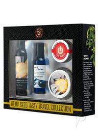 Don`t forget these treats when you`re on the road too! No matter where you`re traveling to our Tasty Travel Collection has you covered with key products to enhance your adventures. Natural and safe, you`ll be glad to have these handy for your endeavours.COLLECTION INCLUDES:Waterslide, 1 fl oz.Edible Massage Oil, 2 fl oz.Love Button, 0.45 oz.Edible Massage Candle, 2 oz.