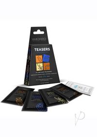 Teasers Coffee House Mix Teasers Fruit Mix includes two packettes each of Salted Caramel, Blueberry Muffin, Cinnamon Bun, Vanilla Bean PLUS a bonus packette of simply Aqua.Wicked Aqua Flavors add subtle and delicious natural flavors to enhance oral pleasures.Light and silky, this water-based formula is the perfect sensual combination of an elegant lubricant and a flavor sensation.Never sticky and without an aftertaste, WSC flavors satisfies your sweet tooth and your intimate desires all in one amazing pleasure product.Oral sex never tasted so good!Long-lastingLatex friendlyParaben FreeNever stickyNo aftertasteEnhanced with Olive Leaf ExtractVegan andndash; no animal by-products or testing