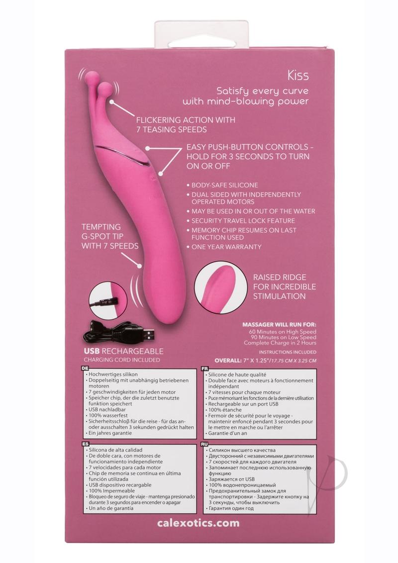 Tempt and Tease Kiss Rechargeable Silicone Vibrator with Clitoral Stimulator – Pink