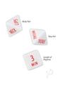 Fun, pleasurable and on the edge!Roll the dice to determine body part, activity and length of playtime3 dice includedPackage Dimensions: 5 x 3.5 x 0.5 in.