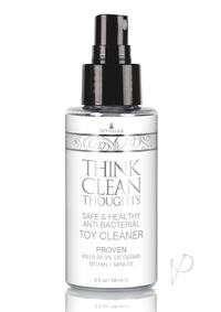 Think Clean Thoughts is a quick and simple-to-use anti-bacterial cleaning spray, containing active anti-microbial ingredients proven to kill 99.9% of all germs, and it is mild enough to not cause irritation to delicate tissue. Made with healthy ingredients such as: water, witch hazel extract, grape seed extract, sweet orange and other true essential oils. Think Clean Thoughts is a better choice for cleaning pleasure products than standard bar hand and body soaps because it is oil-free and will not break down toy materials, nor does it leave any residue that may be irritating to delicate tissue. Simple to use: spray directly onto pleasure products both prior to use, and afterward. Wipe away extra fluid.