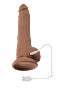 Thrust In Me Rechargeable Silicone Thrusting Vibrating Realistic Dong with Remote Control – Chocolate