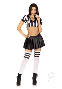 3 Pc Time Out Ref, Includes Crop Top, Pleated Skirt, And Whistle. MEDIUM BLK/WHITE