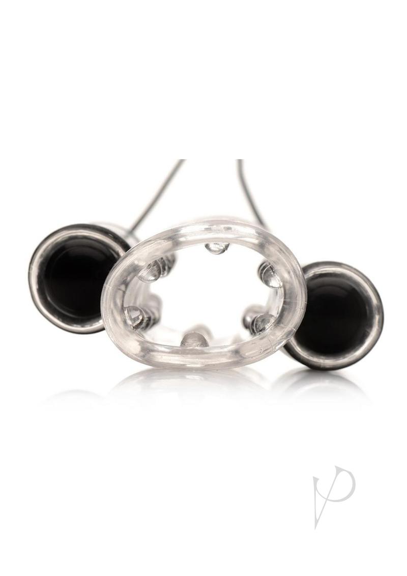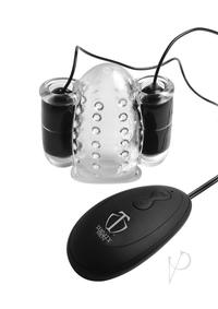 Give yourself a genuine cock tease with this Dual Cock Teaser! The stretchy, TPE sleeve has a nubbed interior that reacts to the powerful bullet vibes to tease and tantalize your shaft! The dual vibrating bullets slip into parallel pockets on either side of the sleeve. With a snug, tight fit, the bullets give an even vibration that spreads through the shaft, head and even down to the balls! Enjoy controlling the powerful vibration from the corded remote. Choose between 3 speeds and a whopping 17 patterns to enjoy! Try something new every time when you combine the vibration speed and patterns. Enjoy the sleeve during masturbation, foreplay or simply to tease yourself until you`ve been edged and milked!Grab yourself some water-based lubricant and rub some on the inside of the sleeve and along your shaft. Pull the constriction ring down over your shaft followed by the sleeve and gently pull it down over the shaft until it is in the center of our shaft and below the corona. As you feel yourself getting harder, enjoy how the vibration makes the textured nubs tease and stimulate your shaft. Turn the vibes on and off to edge yourself or let go fully and enjoy the sensation!After play is over, simply wash the sleeve with warm water and mild soap, then spray with a toy cleaner and let it fully dry. Replace the batteries as needed. Use only with water-based lubricants for best results.Measurements:Length: 2.4 inches, Width: 2.6 inchesMaterials: TPE, ABS PlasticColor: Clear, BlackNote: Requires 2 x AAA batteries (not included). Use only with water-based lubricants.Key Features:Stretchy TPE Sleeve: Enjoy the stretchy, TPE sleeve as it sensually squeezes and stimulates your shaft. The interior has textured nubs that grip and stimulate your shaft with each vibration level. Dual Vibrating Bullets: Two different bullets sit on either side of your shaft as you wear the sleeve and fit in parallel pockets.Remote Controlled: Enjoy 3 speeds and 17 patterns of intense vibration from these small but mighty bullets! Use the cord-connected controller to change settings as you tease and edge yourself!Battery Operated: Replace batteries as needed. Requires two AAA batteries to operate (not included).
