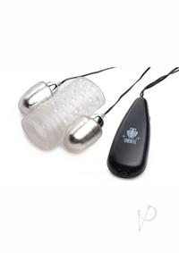Enhance your shaft massage with powerful vibration and sensational texture! With super powered twin vibrating bullets and a super stretchy, open-ended sleeve, you can experience stroking stimulation on a whole new level! Just slip the tube onto your cock and control the level of thrumming thrills with the easy-to-use speed dial on the wired controller. Boasting a strong motor, these two bullets help surround your cock in toe-curling vibration. Inside the stroker are two textures: rapturous ribbing and blissful bumps that will further tease you towards orgasm. Use it on your own or with a partner to find out what all the buzz is about!Measurements:3.5 inches in length. Inner diameter is 1.25 inches unstretchedMaterial:andnbsp;TPE, ABS PlasticColor:andnbsp;ClearNote:andnbsp;Requires 2-AA batteries, not included