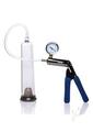 Get rock hard with a heavy-duty pumping system. Achieve an erection as impressive as the iconic drawings of Tom of Finland when you slip your penis into the silicone comfort sleeve of the cylinder, creating a strong seal with a bit of water-based lube if necessary. Snap the hose onto the vacuum lock top of the cylinder and squeeze the comfort grip handles to begin suction. Every squeeze will reflect on the pressure gauge, as well as in your penis as it becomes engorged.Measurements:Cylinder is 9.5 inches in total length with an inner diameter of 1.75 inches and an outer diameter of 2.25 inches.Hose is 14 inches in length.Material: Metal, Silicone, Rubber.Color: Clear.Note: Includes a free Tom of Finland Collector Card.