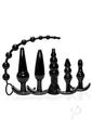 Six backdoor beauties; the perfect intro to ass-play! These body-safe TPR plugs and beads are carefully mixed and matched in graduated sizes and shapes for a variety of sexy sensations. The perfect try-me kit for backdoor explorers, and a terrific starter-pack value!