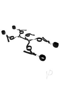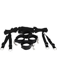 The original (yes, we invented it) Under The Bed Restraint System is easy to set up, in fact, sets up in minutes. 4 adjustable cuffs (fits 4 inch to 12 inch wrists), four restraint straps secured to one connector strap that fits securely under your mattress. Restrains your partners` arms and legs from the sides or bottom of the bed. The restraint strap quickly fits beneath any mattress with no hooks and adjusts to the size you desire. Easy set-up on any mattress. Portable and great for a surprise getaway.Features: