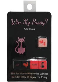 The foreplay game that leads to enjoyment of her pussy. Players take turns rolling all five dice. The black dice represent him and the red dice represent her. Each set has an action die and a body part die. The Cock or Pussy graphics on the dice are wild and a player wins by rolling either three cocks or three pussies. The winner gets to decide how the pussy and cock are used for either oral sex or for a sex positions. Includes: 5 Dice