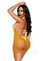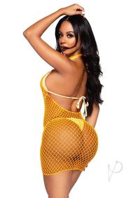 Woven net twist halter mini dress. O/S Neon Orang