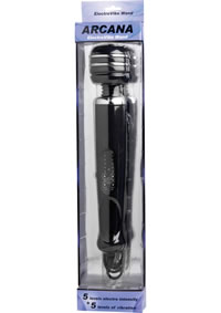 Want some vibration with your electro play? With the Arcana ElectroSex Wand by Zeus, you can have both! Simply apply a generous amount of Incite ElectroSex Gel (sold separately) onto the area you wish to stimulate, and plug the wand into an outlet. Control the flow of vibration and electro excitement via the controller located on the handle. The one of a kind piece features five levels of electro and vibration intensities, each independently controlled with their own button. You can choose to have both stimulators on at the same time, or one on its own. With the side boost button, you can create your own pulse pattern by tapping the button for a rhythmic jump. The ergonomic shape and flexible neck assists target stimulation and its sleek black design with gleaming silver accents makes Arcana a darkly sexy treat.Measurements:12.75 inches in total length, head measures 2.4 inches in diameter.Material:andnbsp;ABS Plastic, Metal, TPRColor:andnbsp;BlackNote:andnbsp;110v US voltage. Patent pending.