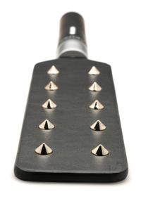 Add some bite to your spanking sessions with this E-stim Spiked Paddle! It has 10 spikes on one side that will bite into your partner`s juicy flesh like little teeth. They won`t break the skin, but they will leave a memorable sensation. Flip it over to the flat side and rub their behind to cool them down. Then amp up the intensity again by turning on the electrostimulation! Choose between two different intensities and enjoy as they get shocked by the conductive spikes! The paddle is covered in vegan-friendly, faux (PU) leather and the metal is made out of nickel-free, zinc alloy. The e-stim paddle is rechargeable. Simply use the USB cable provided. Keep away from water.Start the scene like you usually would, but let them know you`ve got a little surprise. As long as they are consenting to some e-stim play, give them a few gentle zaps by touching the metal spikes to their skin. Then combine it with spanking and paddling to up the intensity and really spice up the scene! Alternate between the flat and spiked sides and try both intensities until they`ve reached their limit!Measurements:Overall length: 16 inches. Paddle width: 2.5 inches.Materials: PU Leather, ABS Plastic, Zinc Alloy Color: Black Note: Keep away from water. Not recommended to use e-stim products on the chest or with partners who have pacemakers. Key Features:E-Stim Spikes: The electricity runs through every one of the conductive metal spikes so each hit has an extra shock!Flat Side of Paddle: Enjoy using the flat side of the paddle, as well. It`s covered in vegan-friendly, faux (PU) leather.Two Levels of Stimulation: Choose between high or low intensity.Rechargeable and Nickel-Free: Use the USB cable to recharge between uses. All metal is nickel-free and body-safe.