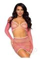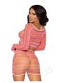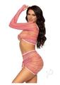 Leg Avenue Zig Zag Net Gauntlet Sleeve Crop Top and Mini Skirt (2 Piece) – O/S – Pink