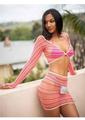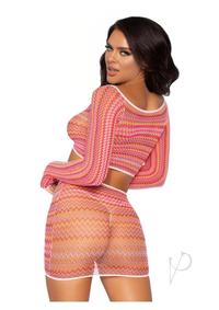 2 PC Zig zag net gauntlet sleeve crop top and mini skirt O/S PINK
