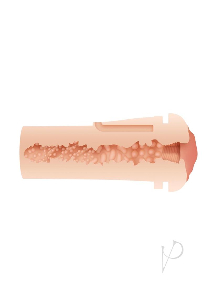Bring your erotic fantasies to life with this realistic stroker crafted to feel just like the real thing! Tickle your way through the soft pink lips at the entry and thrust into the tight channel thatandrsquo;s textured with pleasure nubs and ribs for a pleasure ride thatandrsquo;s easy to navigate with the ergonomic cannister exterior. Enjoy in the bath or shower as itandrsquo;s completely submersible and cue up the complimentary adult movie for inspiration! Experiment with the cock ring included to keep you hard and buzzing with excitement wherever you place the vibrating bullet. Entire sleeve removes for cleaning.Realistic vagina strokerWell-crafter, life-like pink lipsInner channel pleasure ribs and nubsTextured cannister for better gripLocking removable capStroker sleeve removes for cleaningComes with vibrating C-RingSleeve made from soft andamp; stretchy TPE rubberCannister made from durable ABS plasticWaterproof andamp; submersiblePhthalate andamp; latex freeIncludes erotic movie downloadHeight: 8.75, Depth: 3.48, Width: 3.48Weight: Over 1 lb